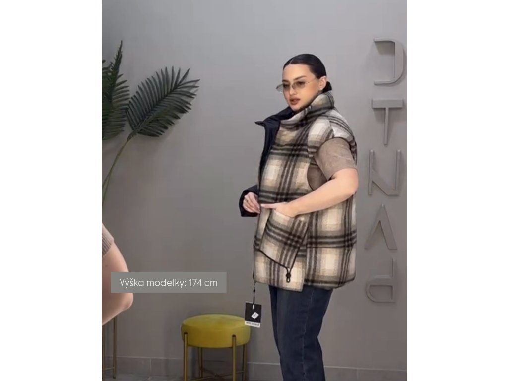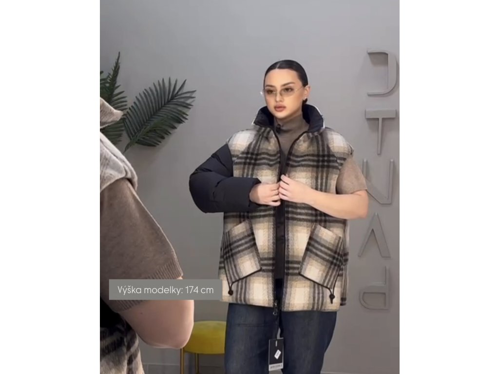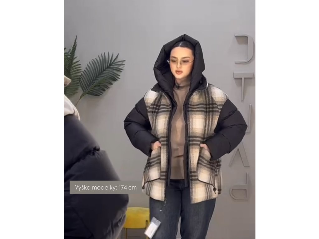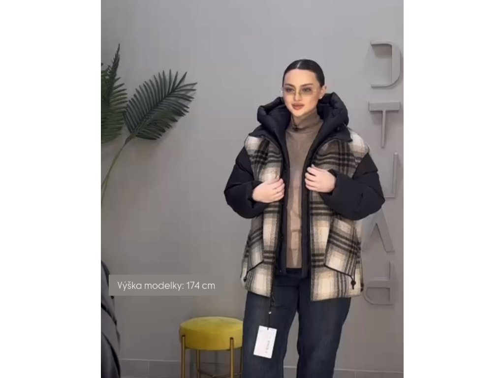 Teplá zimní bunda s odepínacími rukávy, kterou můžete nosit i jako vestu. Moderní kostkovaný vzor, velká kapuce a praktické kapsy.